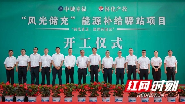 懷化市“風(fēng)光儲充”能源補(bǔ)給驛站項目開工儀式現(xiàn)場。