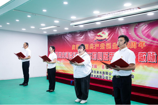 一百年風(fēng)雨歷程,一百年崢嶸歲月。為重溫黨的光輝歷程,喜迎中國(guó)共產(chǎn)黨百年華誕,5月26日,市水務(wù)集團(tuán)自來水有限公司舉行“重溫黨史誦讀經(jīng)典、不忘初心砥礪前行”誦讀、歌詠比賽。公司員工相聚一堂,用誦讀、歌唱的方式,讀黨史、念黨恩、跟黨走,上了一堂深刻的紅色黨史教育課。
